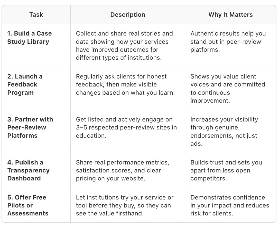 The educational services market is transforming toward community-driven models that reduce information asymmetry, improve procurement outcomes, and create accountability mechanisms that benefit everyone except poor performers who relied on opacity. That transformation represents substantial progress for educational institutions seeking quality partnerships and excellent providers seeking to differentiate themselves through demonstrated results.